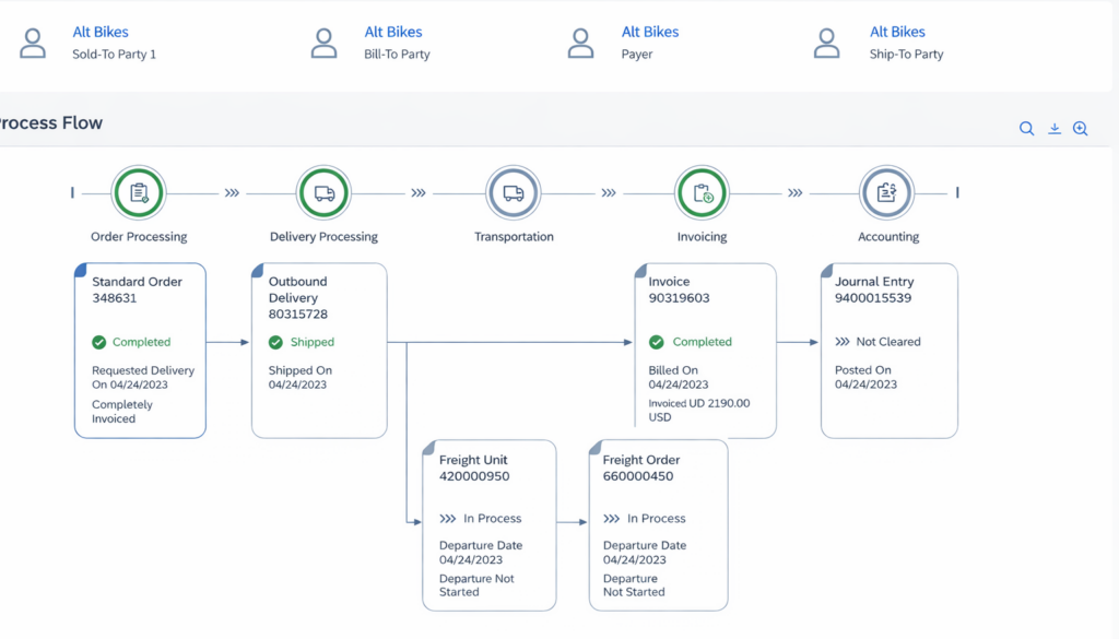 Proses ini mencakup empat tahap utama: order, delivery, invoicing, dan accounting yang terhubung secara otomatis tanpa input ulang. Inilah yang menjadi keunggulan utama SAP: satu transaksi mengalir ke seluruh proses bisnis secara real-time, memastikan tidak ada duplikasi data, mengurangi human error, dan memberikan visibilitas penuh dari awal hingga akhir proses.