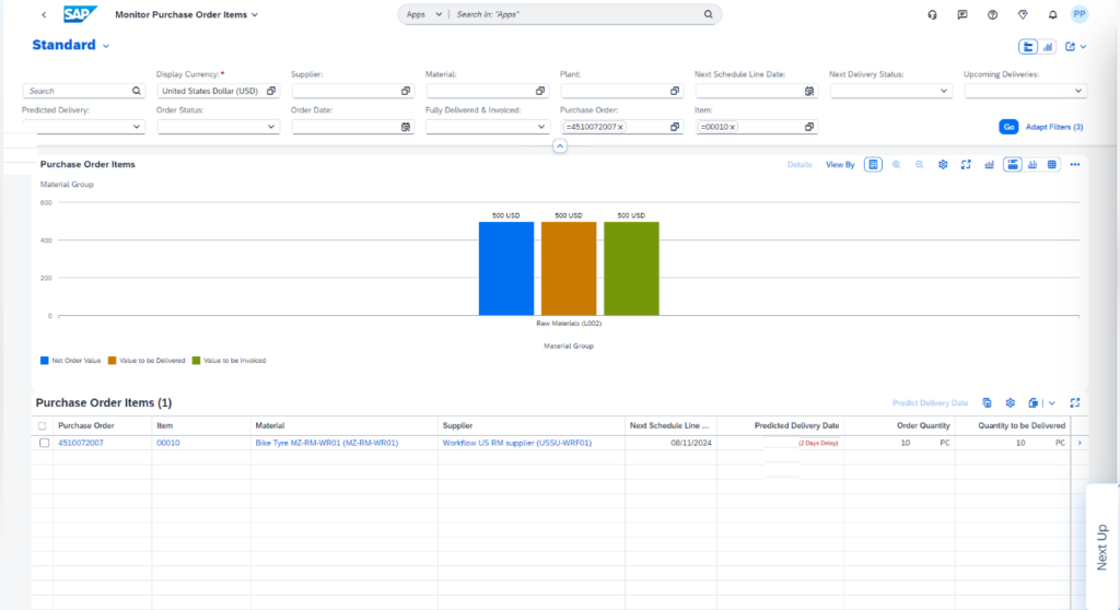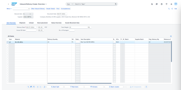 Proses pengelolaan keluar masuk inventory di SAP termasuk melibatkan proses kontrol demi menghindari stok terlalu tinggi dan terlalu rendah. Pada tahap ini, sistem menampilkan proses verifikasi kuantitas, tanggal dan waktu pengiriman dengan supplier untuk memastikan kualifikasi memenuhi standar sebelum diterima dan masuk ke gudang.